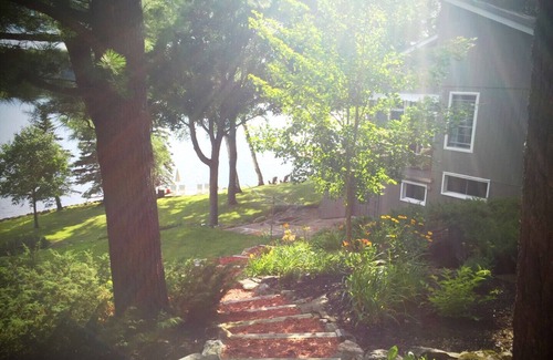 he Main Cottage has 4 Bedrooms/ 4 Bathrooms and a 5th Room to Sleep your Guests (Study with a pull out couch). The Guest Cottage (Right next door) has 4 Bedrooms and 2 Bathooms. Both properties have their own separate Kitchens, Living Rooms and large outdoor Decks. The cottage also has a huge flat Lawn overlooking the lake; perfect for outdoor sports or elegant outdoor dinners on the lawn. The cottage overlooks the lake and displays beautiful views. Hiking, relaxing, swimming, bbqing, lawn sports, whatever your heart desires, this vacation rental has it all!