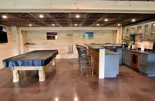 Este alojamiento de 5 dormitorios y 4.5 baños cuenta con una sala de estar, un comedor, chimenea y aire acondicionado. Disfruta del wifi y del billar. El cuarto de baño incluye un secador de pelo y toallas. La cocina está equipada con horno, placa de cocina y frigorífico, además de cafetera y tetera, microondas y utensilios de cocina. Y gracias a la lavadora y la secadora, podrás viajar con poco equipaje. Otras comodidades incluyen ropa de cama, una tabla de planchar y calefacción.