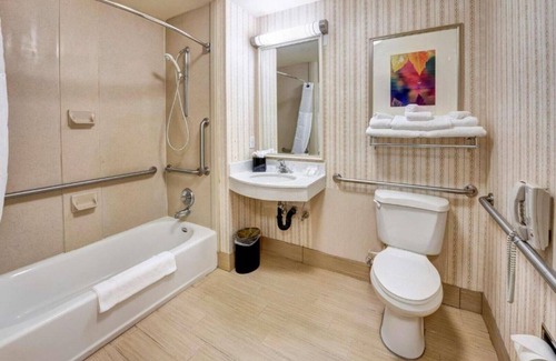 Este alojamiento de 1 dormitorio y 1 baño cuenta con aire acondicionado, escritorio y impresoras. El cuarto de baño incluye un secador de pelo, toallas y papel higiénico. Para tu comodidad, encontrarás frigorífico y microondas. No necesitarás llevarte mucho equipaje, porque hay una secadora.