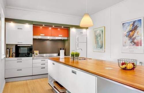 "Ejnarine" - 600m to the fjord", apartamento de 5 estancias 206 m2. Vivienda adecuada para 8 adultos + 1 niño. Salón con TV. 1 dorm. con 2 camas. 1 dorm. con 2 camas. Estudio 1 dorm. con con 1 cama. Cocina (horno, lavavajillas, 4 placas de vitrocerámica, congelador). 2 ducha/WC. El alojamiento dispone de: trona, cuna. Internet (Wifi). A tener en cuenta: apartamento para no fumadores. Permitido máximo 1 mascota / perro. 820-1344