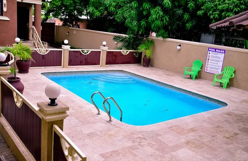 Elegante apartamento de 2 dormitorios con excelentes vistas ubicado a dos minutos en automóvil del Museo Bob Marley en la ubicación premium de Liguanea, Kingston 6. Este moderno apartamento en el tercer piso ofrece vistas espectaculares. Es espacioso y tiene muchas luces naturales que ingresan al apartamento, lo que lo hace bastante relajante. Disfrute de una vista pintoresca de las montañas desde el dormitorio principal, la sala de estar, así como una vista de la piscina y la ciudad desde el balcón de la sala de estar.