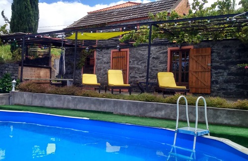 Típica pequeña Madeira. Piedra rocas casa con 1 dormitorios. Capacidad de una cama doble y 2 sofás cama. 1 cuarto de baño. Barbacoa, hermosa vista directa al mar cerca de levadas, piscina. gran jardín con flores de 2000 m2. Relax y placer es sólo las dos palabras!