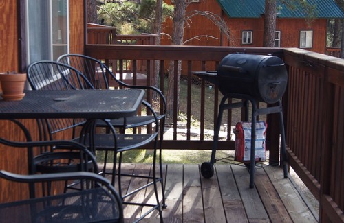 There is a master bedroom with queen bed and closet, with direct access to a spacious bathroom with a shower. The loft area above is divided for privacy and has 2 queen beds. There is also a living and dining room area. Each cabin has a full kitchen with all the amenities of home which include stove, refrigerator, toaster, coffee pot, blender, dinnerware, silverware, pots, pans, cooking utensils, bakeware; everything down to spice rack, dish/hand soap, hand and paper towels. Each Cabin has it own private deck with outdoor furniture, BBQ with tools, and great views of wildlife! Elk Haven is a great space for a family to spread out and get comfortable and immerse yourself in the atmosphere of the Black Hills.