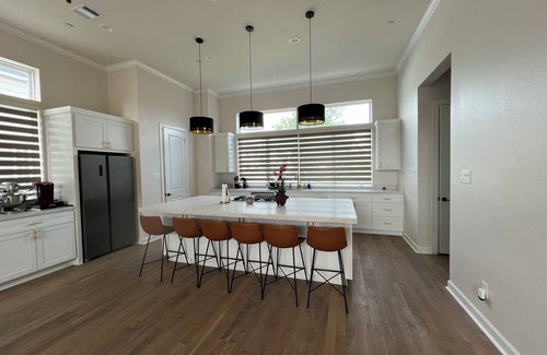 4-story house that accommodates groups of 6 in the centrally located Heights neighborhood! Quick access to 610 and I-10 making access a breeze! Sophisticated design, expansive windows, and high ceilings create an open and inviting space throughout the house! The open-concept layout provides ample space for the gourmet kitchen and living space! There is a luxurious master bedroom with a bath and shower. There is a dedicated workspace on the 4th floor far away from the living room noise!