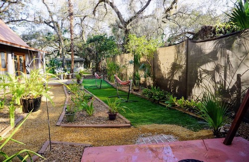 The Nature House es un refugio de cabañas aislado ubicado junto a un canal con acceso al río Withlacoochee. La casa cuenta con una pared de ventanas completa, una reconfortante chimenea eléctrica, un enorme loft, una gran sala grande y dos habitaciones amplias. La cocina de tamaño completo, los televisores de pantalla plana con dispositivos Roku, el acceso a Internet DSL y los colchones viscoelásticos lo harán sentir como en casa. De cuatro a seis personas pueden quedarse cómodamente con un amplio espacio para extenderse en 1500 pies cuadrados de espacio habitable. ¿Estás listo para una aventura? Si desea la sensación de una cabaña en el bosque sin desbarbarla, ha elegido el lugar correcto. The Nature House es un refugio de cabañas aislado ubicado junto a un canal con acceso al río Withlacoochee. La casa cuenta con una pared de ventanas completa, una reconfortante chimenea eléctrica, un enorme loft, una gran sala grande y dos habitaciones amplias. La cocina de tamaño completo, los televisores de pantalla plana con dispositivos Roku, el acceso a Internet DSL y los colchones viscoelásticos lo harán sentir como en casa. Hay dos camas king en la planta baja y una cama matrimonial arriba. De cuatro a seis personas pueden quedarse cómodamente con un amplio espacio para expandirse en 1500 pies cuadrados de espacio habitable. Se pueden lanzar canoas y kayaks desde el patio trasero. Comenzará su aventura en un camino de tierra lleno de baches de tres millas, así que deje sus delicados vehículos atrás. Los campistas y los pequeños vehículos recreativos viajan en las carreteras, pero las lluvias y los pozos pueden ser difíciles a veces. Los hermosos robles abuelos de 150 años de edad le darán la bienvenida y pueden limitar la cobertura de su teléfono celular. Los avistamientos de vida silvestre son comunes con venados, zarigüeyas, caimanes y coyotes. Los bosques nacionales cercanos tambi��n tienen osos y monos. Es probable que veas insectos que nunca has visto antes. Big Blue Springs está justo al final de la carretera, accesible solo en kayak oa pie. La ciudad de Dunnellon también está cerca y tiene tiendas y restaurantes maravillosos. Three Sister Springs, a unos 45 minutos, es uno de los pocos lugares del mundo donde se puede nadar con manatíes en aguas cristalinas. Rainbow Springs es de unos 30 minutos y ofrece hermosas cascadas, un río lento y nadar en las aguas transparentes de manantial. Tiendas de comestibles y tiendas está a poca distancia; Ocala está a unos 20 minutos. Mientras esté aislado, estará cerca de los vecinos que elijan vivir aquí a tiempo completo o visitarlo por diversión. The Nature House es su hogar rústico lejos de casa. Ideal para crear recuerdos familiares o simplemente para desconectar de la rutina diaria.