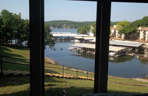 Este condominio está a solo un tramo de escalones desde el estacionamiento y es una unidad final. Está situado justo en el lago con una gran vista del canal principal. ¡Relájate en tu sala de estar, en la terraza o junto a la piscina mientras disfrutas de la vista del lago y los barcos que pasan a toda velocidad! Hay cinco muelles para pescar o nadar en el lago. Para mayor disfrute, Robinwood también ofrece una cancha de tenis, cancha de pickle ball, cancha de baloncesto y un pequeño parque infantil. El condominio está ubicado en una zona residencial, a solo minutos de numerosos restaurantes, campos de golf, alquiler de botes y una variedad de actividades para niños y adultos también. ¡Venga a disfrutar de unas vacaciones llenas de diversión o una escapada relajante en el hermoso Lago de los Ozarks! Reservar su condominio es fácil y hay una oficina conveniente al otro lado de la calle para el check-in y el check-out. Otros condominios de dos o una habitación también están disponibles para alquilar si necesita espacio adicional.