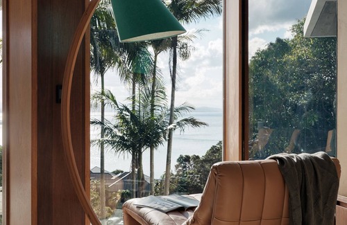 Este at Wategos is a sanctuary sculpted into the hillside—where architectural artistry meets nature’s rhythm. Recognized among the most exclusive Byron Bay holiday homes, the residence flows with the land, surrounded by rainforest and ocean views. With Italian stone, local timber, and timeless design, Este invites guests to reconnect, reset, and immerse in understated luxury. Every room reveals panoramic views—either lush greenery or the sparkling Pacific Ocean—delivering nature’s embrace from every angle.
