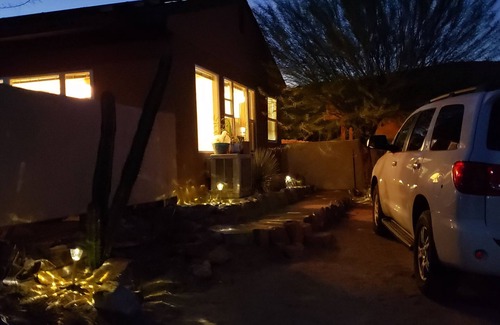 Este es un estudio que se adjunta a la casa principal, que también se alquila. La propiedad se encuentra al borde del desierto de Anza Borrego, cerca de Borrego Springs, CA. Tiene A / C, una cama queen y mira hacia el norte sobre unas hermosas montañas. Está a 5 minutos de las esculturas de Galleta Meadows, y a menos de 1/2 hora de Coyote Canyon, Palm Canyon y Fonts Point. El Mar de Salton está a aproximadamente media hora de distancia, y lo más destacado de Salvation Mountain y los Volcanes de lodo están a otros 45 minutos de allí.