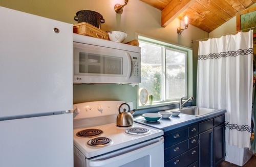 Escondido justo al norte del pueblo de Yachats y ubicado a lo largo de la orilla de Starr Creek se encuentra la cabaña de playa más dulce. Durante una remodelación de 2018, se encontró una vieja nota de amor detrás del espejo de vanidad y con cariño llamamos a esta casa Love Shack como un honor para la dulce pareja que hizo su hogar aquí.