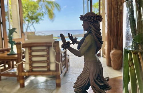 'HALE KONA A'EKAI' es un hogar personalizado privado frente al mar único que significa 'el hogar junto al mar'. Fue diseñado intrincadamente para capturar la esencia de la vida hawaiana frente al mar. Los techos de paja, las paredes abiertas, las ventanas con persianas de teca, las puertas de teca de diez pies, los lanais interminables y el paisaje tropical, ayudan a capturar el espíritu de las islas. La casa está exquisitamente detallada con teca importada, bambú, mármol, granito y cuarcita en todas partes. La casa ha aparecido en varias revistas. Los jardines son igualmente impresionantes con raras flores y palmeras tropicales, cuatro cascadas y una impresionante piscina de baño con un borde infinito. ¡Un puente de escalera lo lleva al pedestal de la isla donde puede disfrutar de una cena rodeada de agua con vistas simultáneas de la puesta de sol, las cascadas y el choque de las olas! Encantador, mágico y romántico, hay mucho más para describir, ¡pero debes verlo por ti mismo! Lujo sin igual. ¡Ven y quédate con nosotros y experimenta la mística y la belleza de la Isla Grande!