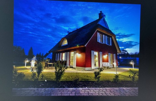 Exclusive thatched house on the water, terrace, fireplace, sauna, WLAN, barbecue.145m² Se encuentra en Ummanz. Exclusive thatched house on the water, terrace, fireplace, sauna, WLAN, barbecue.145m² ofrece alojamiento, con Entretenimiento, Seguridad, Instalaciones de bienestar, Entre otras comodidades. Estas características Casa Entretenimiento, Seguridad, Instalaciones de bienestar, Para que su estadía sea cómoda.