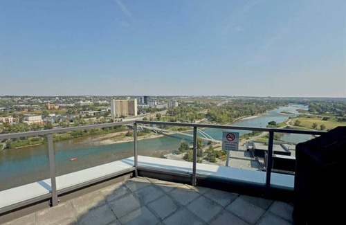Executive 1-Bed + Office Loft – Prime Riverfront, Gym, Near Stampede & City Life | Apartamento en Calgary