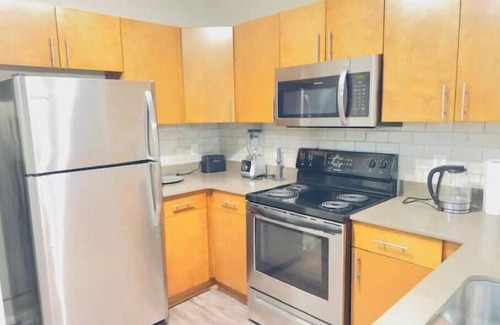 Este alojamiento de 1 dormitorio y 1 baño cuenta con una sala de estar y aire acondicionado. El cuarto de baño incluye un secador de pelo, toallas y papel higiénico. Prepara una comida casera en la cocina, equipada con horno, placa de cocina y frigorífico, además de hervidor eléctrico, máquina de hielo y olla para cocinar langostas. Y gracias a la lavadora y la secadora, podrás viajar con poco equipaje.