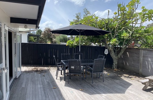 Los niños tienen mucho espacio para jugar en el jardín (el jardín trasero puede ser cercado) o los niños pequeños pueden disfrutar del columpio debajo del árbol pohutakawa. El bach está ubicado en un encantador y tranquilo callejón sin salida con una gran reserva central, ideal para cualquier juego de cricket / fútbol extendido.