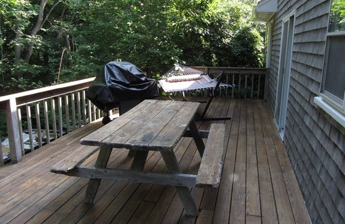Este hogar lejos de casa de 4 dormitorios está equipado con su comodidad, diversión y comodidad en mente. A pie o en bicicleta hasta el pueblo de Woods Hole o playas. Ride, patinar, correr o caminar el Sendero Luminoso Mar bici. Comer fuera en la cubierta (o la parrilla de su pesca del día!) mientras que los más pequeños jueguen en el patio o en el columpio. Juegue juegos de mesa, mire un DVD, tome un libro prestado o desafíe a un amigo a jugar futbolín.