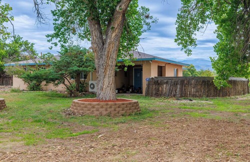 Beautifully 4BR/2.5BA farm casa just outside Santa Fe. Enjoy farm-fresh eggs, seasonal produce, and meet goats, sheep, chickens & ducks. Relax in the TV room, work with Starlink internet, or train in the covered outdoor gym. Picnic beneath old cottonwoods, stargaze by night, and take in stunning views of Ski Santa Fe, the Pojoaque Badlands & Jemez Mountains. Located just off the scenic highway to Taos this Nambe farm is a gateway to Northern NM adventures!