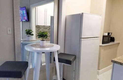 Para tu comodidad, encontrarás frigorífico y cafetera y tetera. Disfruta del wifi y de la televisión. El cuarto de baño incluye un secador de pelo y toallas. Otras comodidades de este alojamiento de 1 dormitorio y 1 baño incluyen ropa de cama, una tabla de planchar y aire acondicionado.