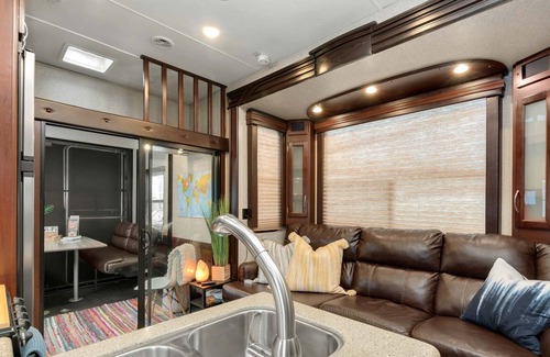 Acampe cerca del corazón del centro de Loveland (la ciudad de la novia) cuando reserve este bungalow limpio, moderno y hogareño de quinta rueda.