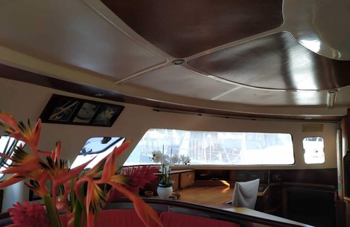 En un catamarán grande y cómodo, en el pontón principal del puerto deportivo, (sin posibilidad de navegación) está de humor para los marineros en el largo patio, gira mundial para muchos después de la primera etapa: "La tumbona". El bar de los marineros (bahía del mango) a 2 ’a pie y 5’ a pie, o un poco más, supermercado, mercado, restaurante, etc. La vida como navegante sin mareo