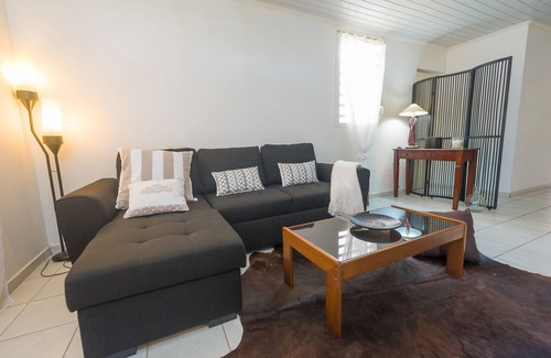 Es un hogar perfecto para familias y grupos. Una vista panorámica del mar desde la terraza que le ofrece un espacio adicional para disfrutar de la dulzura de la noche tropical o tomar el sol a la discreción de las diversas barbacoas y otros platos que animarán estos momentos. El punto ogro es el exuberante jardín y Jaccuzi 6 lugares. Todo ha sido pensado para hacer que su estancia sea agradable y sublime.