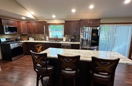 Granite Peak Getaway – 4BR, Sauna, Hot Tub, Fire Pit posee 4 Dormitorios , 2 Baños, y ocupación máxima de 10 people. El alquiler mínimo para esta propiedad es 1 nights, Pero esto puede cambiar dependiendo de la temporada que planee quedarse. Los invitados anteriores lo han calificado 2, y VRBO lo etiquetó como un Casa de primera calificación debido a los excelentes servicios prestados por el propietario o gerente de este Casa, y ha proporcionado constantemente excelentes experiencias para sus invitados. La mayoría de las familias o invitados que lo usan lo recomiendan a sus amigos y algunos son invitados repetidos. Casa tiene un vecindario amigable, y el Rib Mountain tiene lugares interesantes para visitar. Si quieres aprender más sobre el Casa en Rib Mountain, Como lugares para visitar y cosas para hacer cerca, puede consultar a continuación para obtener más información.
