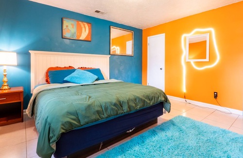 Prepara una comida casera en la cocina, equipada con horno, placa de cocina y frigorífico, además de máquina de hielo, microondas y utensilios de cocina. Pon a prueba tus habilidades jugando al futbolín, o disfruta del wifi gratis y de la smart TV. El cuarto de baño incluye toallas, jabón y champú. Y no tendrás que llevarte ropa de más, porque podrás aprovechar la lavadora y la secadora. Otras comodidades de este alojamiento de 2 dormitorios y 2 baños incluyen ropa de cama, calefacción y una mesa de comedor.
