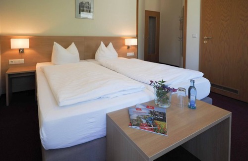 Pase sus mejores días del año en nuestras habitaciones diseñadas con amor. Ofrece amplias habitaciones de 20 a 22 m² decoradas con muebles modernos en decoración de roble. Cada habitación está equipada con camas con somier en altura cómoda, sillón, escritorio, armario, banco de maletas, armario y cortinas opacas. La moqueta proporciona comodidad. Nuestros baños rediseñados, con un diseño moderno y agradable, están equipados con artículos de tocador y secador de pelo. Hay conexión Wi-Fi gratuita en todas las habitaciones.