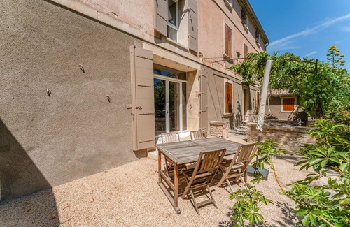 En Mas Saint Louis, en Les Angles, podéis disfrutar de una terraza compartida en un parque de 2000 m² sin vecinos enfrente. La propiedad combina confort moderno con encanto regional, ideal para descubrir la Camarga y la región de Aviñón.