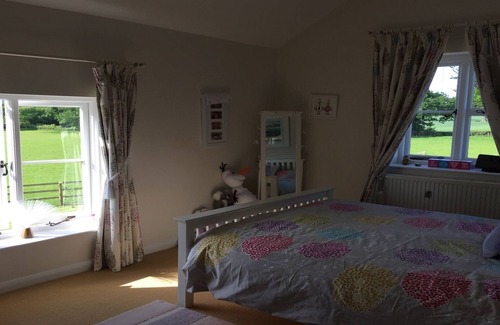 Esta casa se encuentra a las afueras del pueblo de Pembridge. Es una cabaña de ladrillo rojo con una extensión de roble, el sol mira a la casa todo el día. La perspectiva es directamente sobre los campos con una perspectiva sorprendente. Está muy preparado para exteriores con terrazas en la cocina. La casa está impecablemente presentada y está reformada en todo momento. Hay cuatro habitaciones dobles y dos baños. Hay dos camas king size, una super king y otra super king o dos individuales. El pueblo de Pembridge está cerca, que tiene pubs, restaurantes y dos cafés, uno galardonado. Hereford, Ludlow y Hay on Wye están a 25 minutos. Esta es una gran casa de verano y también en invierno con un Aga y una estufa de leña. Altavoces Sonos en toda la casa, sky y wifi. Hay una sala de juegos grande separada para niños con juguetes y televisión que se puede usar o apagar si no hay niños.