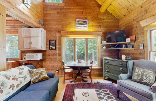 Bellamente equipada con acabados de cedro blanco y encantadoras antigüedades y objetos de colección del último medio siglo, esta cabaña se encuentra en un campo verde de helechos frecuentados por la fauna local. Estarás a menos de una milla (cuesta abajo) de la playa en el lago Moosehead, que es perfecto para una tarde de actividades acuáticas y un almuerzo campestre con la familia. Los excursionistas pueden explorar las montañas vecinas y partes del sendero de los Apalaches, y los navegantes y caminantes encontrarán mucho que amar en Lily Bay State Park, inmediatamente al norte. El invierno también brinda oportunidades para el esquí de fondo, motos de nieve y pesca en hielo.