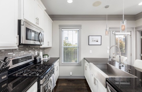 Este exclusivo 3BR / 3. La casa 5BA ubicada en Nashville, al otro lado de la calle de la Universidad de Belmont, se encuentra a poca distancia de Music Row, Hillsboro Village, 12 South y la Universidad de Vanderbilt. The Gulch y todo lo que el centro tiene para ofrecer está a 5 minutos. Construido en 2014, esta elegante casa de tres niveles está recién amueblada. Esta casa tiene una gran sala de estar con un televisor de 65 ", un sofá grande y cómodo, un sillón doble y mesas de café y mesitas de mármol. La mesa del comedor tiene capacidad para 6 personas o cena en la isla de cocina de cuarcita negra con capacidad para hasta 3 personas. La cocina gourmet completamente equipada tiene electrodomésticos de acero inoxidable y utensilios de cocina gourmet. Arriba hay dos habitaciones grandes, bellamente decoradas con camas King, baños privados bien equipados y vestidores. Cada habitación de arriba tiene su propio escritorio y un televisor de 55 "y en el pasillo hay una lavadora y secadora apilables para su conveniencia. El tercer dormitorio se encuentra en la planta baja y también está amueblado con una cama King, baño privado y TV de 55 ". Una lavadora y secadora apilables adicionales se encuentran cerca de la habitación inferior, justo afuera de la entrada del garaje. Encontrarás hermosos pisos de madera oscura en toda la casa y te sentirás como en casa con la decoración acogedora y moderna. Fuera del garaje hay una chimenea de piedra para calentarte. Parking privado en la calle. Internet de alta velocidad y televisión por cable.