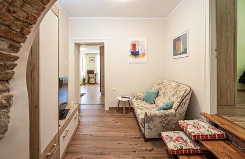 El apartamento, atractivamente renovado, le da la bienvenida a la hermosa ciudad histórica de Moscenice, que está situada en una colina y ofrece una maravillosa vista del mar azul y la bahía de Kvarner. Siéntase como en casa en las luminosas habitaciones, algunas de las cuales aún son testigos de la larga historia de la casa. Disfrute de las comidas juntos sin el ajetreo de la cocina y pase acogedoras veladas en el apartamento después de sus excursiones.
