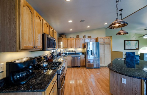 Este alojamiento de 5 dormitorios y 2.5 baños cuenta con una sala de estar, un sofá cama, una zona para barbacoas y chimenea. El cuarto de baño incluye un secador de pelo, toallas y papel higiénico. Prepara una comida casera en la cocina, equipada con horno, placa de cocina y frigorífico, además de cafetera y tetera, hervidor eléctrico y máquina de hielo. Podrás viajar con poco equipaje, porque tendrás una lavadora y una secadora a tu disposición.