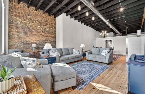 Relax and unwind in small town USA, historic Fayetteville, TN! Retreat to this newly renovated 1890's loft overlooking the courthouse square and appointed with exposed brick walls, soaring ceilings, and oversized windows . Sleeps 4 comfortably, with a full kitchen, smart TVs, and shared laundry access. Everything you need is right here!