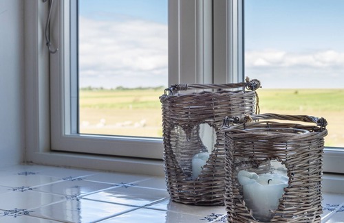 El patio, construido en 1850, está completamente aislado en un montículo. Rodeado de 40,000 metros cuadrados de jardín y prados, el patio está ubicado idílicamente a unos 800 metros del faro. En 2016 y 2017 fue completamente, amorosa y ampliamente renovada. Te atrapó. a. un techo de paja, nuevas ventanas de madera danesas, paredes de yeso y pisos de madera. El apartamento, Regentrude, tiene unos 130 metros cuadrados y tiene 2 plantas. En la planta baja se encuentra la gran área de entrada con sala y comedor con horno y cocina abierta, así como un baño con una gran ducha de lluvia. La nueva escalera conduce a un gran salón. Desde allí se accede a los dos dormitorios y a otro cuarto de baño con ducha de efecto lluvia. Los dos baños nuevos tienen ventanas y ofrecen una vista del antiguo huerto. En otoño e invierno cae la vista del faro. El apartamento es de alta calidad, u. a. con muebles Riviera Maison, amueblados en estilo marítimo. La cocina tiene una nevera independiente con nevera, lavavajillas, horno y vitrocerámica. Ya sea una cafetera Nesspresso o Senseo. Una canasta para perros, tazones, mantas y toallas están disponibles para los amigos de cuatro patas. Desde junio hasta finales de agosto, puede colocar su caballo en el pasto que pertenece a la granja.