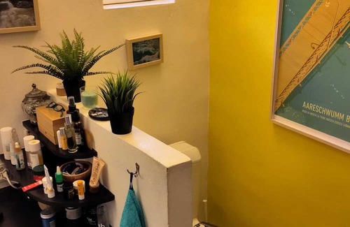 House with garden on the Aare. Open-plan living room incl. kitchen and bathroom. Upstairs are the two bedrooms with double beds. The office is in the annex. The garden/meadow is open to the neighbours. They also help us with the Airbnb management. In summer the Aare invites you to swim. Close to the city and a recreational zone. Friendly young families to the left and right.
