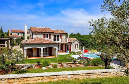 Esta exquisita villa, ubicada en Baderna, cerca de Porec y la costa occidental de la Península de Istria, ha sido diseñada de lujo y es ideal para 8 personas.