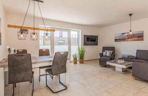 La confortable casa de vacaciones con buen nivel y atractivo mobiliario se distribuye en dos plantas y ofrece las condiciones ideales para unas vacaciones familiares en Schleswig-Holstein. En la planta baja se encuentra la luminosa sala de estar con rincón para sofás, cocina americana y comedor, donde podrá pasar horas acogedoras con la familia o los amigos. La planta superior alberga los dos dormitorios, amueblados con una cama doble y una individual. Para mayor comodidad, toda la casa está equipada con calefacción por suelo radiante. La casa también dispone de una terraza abierta donde podrá relajarse al sol y disfrutar de unas vacaciones tranquilas.