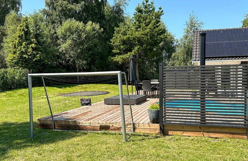 Esta espaciosa y bonita casa de vacaciones está situada en una parcela cerrada y no muy lejos de la playa de arena, ideal para familias. La atracción de la casa es la piscina al aire libre, que está disponible desde mediados de junio hasta finales de agosto. En la sala de juegos se puede jugar al billar, al ping-pong y a los dardos. El luminoso salón cuenta con cómodos muebles y una estufa de leña. La terraza está despejada y en ella también se encuentra la piscina. En el interior encontrará un gran cuarto de baño con bañera de hidromasaje y sauna. En la casa usted tiene un montón de espacio con la familia grande o amigos. En los alrededores se puede surfear y pescar bien y la piscina Lalandia tampoco está lejos. También puede visitar la piscina Lalandia Aquadome o el Knuthenborg Safari Park. En el restaurante Den Gamle Diegegaard se sirven platos tradicionales daneses. La casa no se alquila a grupos de jóvenes.