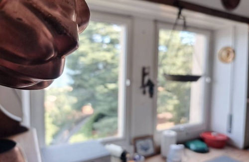 Al entrar, se percibe de inmediato el ambiente auténtico del alojamiento, con sus elementos de madera y decoraciones de cobre y cerámica que evocan las tradiciones locales. El salón, amueblado con estilo clásico y enriquecido con plantas tropicales, conserva elementos típicos de la época como el parquet en espiga, techos con vigas de madera y ventanas talladas. Desde aquí se accede directamente al pequeño balcón exterior, que se abre a un panorama impresionante: desde las montañas nevadas del horizonte hasta las colinas que rodean Como, el centro de la ciudad con sus monumentos, la primera cuenca del brazo del lago de Como y la cercana Suiza. Una vista de ensueño que permite explorar el territorio desde las alturas y ver a simple vista las principales atracciones. La cocina, de estilo rústico y separada del salón, está totalmente equipada con todo lo necesario para cocinar como en casa, y cuenta con una hermosa barra con dos taburetes junto a la ventana, ideal para disfrutar del desayuno o un aperitivo mientras se contempla el magnífico paisaje. La zona de noche cuenta con dos dormitorios: uno con cama de matrimonio y otro con dos camas individuales, ambos amueblados con camas de hierro forjado de estilo clásico y cómodos armarios de madera. El baño, recientemente renovado, está equipado con sanitarios modernos y una amplia ducha.