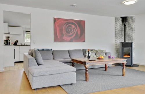 Pase unas vacaciones relajantes en esta acogedora casa de vacaciones, que ofrece espacio para 6 personas con 3 dormitorios. Si lo desea, también puede traer a su perro de vacaciones. Póngase cómodo en las habitaciones de diseño moderno. Desde la mesa del comedor podrá disfrutar de una magnífica vista del exterior y la estufa de leña crea un ambiente acogedor en las noches frescas. Puedes comprar pellets de madera en Frederiksværk.