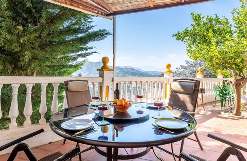 Esta acogedora y espaciosa casa de vacaciones acoge hasta seis huéspedes. La casa impresiona especialmente por su gran zona exterior. En las terrazas parcialmente cubiertas podrá desayunar por la mañana o terminar el día con una copa de vino de los viñedos que se encuentran frente a su puerta. También tiene a su disposición una barbacoa para disfrutar de acogedoras veladas al aire libre. En los cómodos muebles de jardín podrá disfrutar del maravilloso clima del sur de España durante todo el día y contemplar el hermoso panorama.
