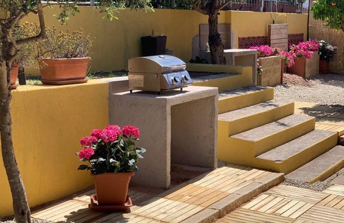 La casa está equipada con todas las comodidades, ideal para unas vacaciones relajantes. Tiene un dormitorio doble y un segundo dormitorio con tres camas individuales y una cuna si es necesario; cuarto de baño con ducha, secador de pelo y lavadora y lavavajillas; una cocina con nevera, horno microondas, cafetera, hervidor, exprimidor eléctrico, tostadora, TV, detector de humo, servicio de cortesía. Una gran sala de estar amueblada con una zona de barbacoa y entrada privada + estacionamiento privado.