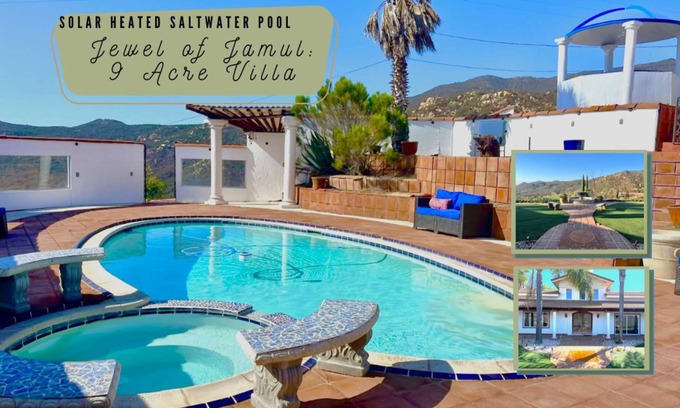 Jamul's Jewel: 9 ACRES,Hilltop,Heated Salt Pool,Spa,City & Mtn. Views,B-Ball Court,Grill,Horseshoes Se encuentra en Jamul. Jamul's Jewel: 9 ACRES,Hilltop,Heated Salt Pool,Spa,City & Mtn. Views,B-Ball Court,Grill,Horseshoes ofrece alojamiento, con Mascota amigable, Piscina privada, Ropa de cama/Ropa de cama, Entre otras comodidades. Estas características Villa Mascota amigable, Piscina privada, Ropa de cama/Ropa de cama, Para que su estadía sea cómoda.