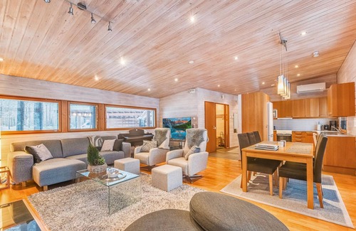 6.5 km al norte de Kuusamo, Ruka a 20 km, el estanque Koukkulampi, playa de arena/ barro, muelle. Villa elegante y bien equipada, construida en 2005. Salón espacioso y luminoso, dormitorio 1: cama doble, dormitorio 2: 2 camas, dormitorio 3: sofá-cama para 2 personas, colchón para 2 personas, combinada cocina, lavadero grande, sauna (estufa eléctrica), 2 duchas, vestidor, terraza grande. Villa elegante, situada en el estanque Koukkulampi, una ubicación pintoresca y tranquila. Áreas al aire libre y recreativas de Kuusamo están en la proximidad inmediata. Excelentes oportunidades para el senderismo y pesca. Spa Kuusamo Tropiikki, campo de golf y parque de actividades Angry Birds a tan solo 2 km de distancia. La Villa también es adecuada para grupos pequeños y reuniones de negocios. Instalaciones de reuniones, internet (por cable y WLAN), PC, impresora y fotocopia. Proyector, pantalla y rotafolio por acuerdo previo. Dos TV (65" y 32"), PlayStation. Otras distancias: Parque Nacional Oulanka / sendero Pieni Karhunkierros a 27 km, Parque Nacional Riisitunturi a 48 km. Reservas empiezan a las 16.00 y terminan a las 12.00 (también en las reservas de fines de semana).
