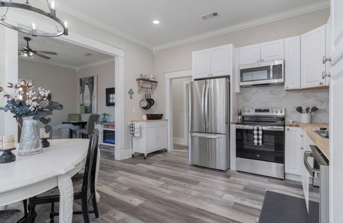 Este alojamiento de 3 dormitorios y 2 baños cuenta con una sala de estar, una zona para barbacoas, chimenea y aire acondicionado. El cuarto de baño incluye un secador de pelo, toallas y papel higiénico. La cocina está equipada con horno, placa de cocina y frigorífico, además de cafetera y tetera, hervidor eléctrico y máquina de hielo. Y gracias a la lavadora y la secadora, podrás viajar con poco equipaje.