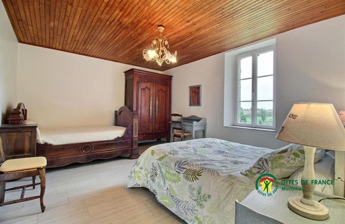 Holiday home made up of two levels: - On the ground floor : Kitchen, living room/lounge, bathroom and separate toilet Bedroom with a 140x190 bed and a 120x190 bed - Floor : Bedroom with 3 90x190 beds Exterior: 1600m² garden with dining table, parasol, barbecue. 2 parking spaces on the property. Cattle breeding 50 meters from the rental. In the immediate vicinity of the garden: enclosure for cattle. In a green setting, enjoy an authentic French atmosphere, the furniture was found in flea markets or belonged to the owners' family. These objects evoke the sweetness of life of yesteryear and will take you back in time. 10 minutes from Lorient, Pont Scorff is a haven of peace with green landscapes which will make you appreciate its natural and architectural riches. Explore the Terres de Nataé, an animal park and also a refuge for endangered species. For a moment of relaxation, the Kerrouseau forest offers you a walk around its pond or river. During the summer season, thanks to the Cléguer nautical base, travel the Scorff estuary by canoe-kayak and observe beautiful panoramas. Want to relax? The beaches of Guidel and Clohars-Carnoët are accessible about thirty minutes away. 20 km away, discover South Finistère and its tourist sites such as Concarneau, Quimper and Pont Aven.