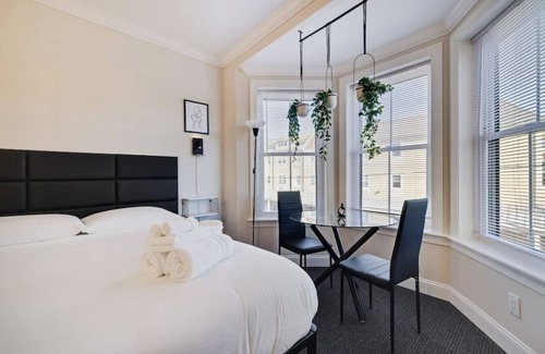 La cocina está equipada con frigorífico y lavavajillas, además de cafetera y tetera, microondas y utensilios de cocina. Disfruta del wifi y de la televisión. Y no tendrás que llevarte ropa de más, porque podrás aprovechar la lavadora y la secadora. Otras comodidades de este alojamiento de 1 dormitorio y 1 baño incluyen ropa de cama, aire acondicionado, calefacción y una mesa de comedor.