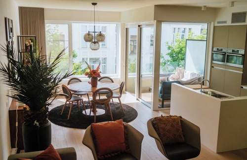 Este apartamento diseñado con esmero ofrece un retiro tranquilo e inspirador en el corazón del animado distrito Zuid de Amberes. Situado en un edificio completamente nuevo con acceso a ascensor, el piso combina líneas arquitectónicas limpias con muebles cuidadosamente seleccionados, acabados de calidad y una iluminación suave. Grandes ventanales aportan luz natural durante todo el día, mejorando la estética minimalista pero cálida.El diseño de planta abierta incluye una acogedora sala de estar, una cocina moderna con todos los essentials, un espacioso dormitorio con una cómoda cama king-size, otro con cama queen-size y un elegante baño con ducha a ras de suelo. Se ha considerado cada detalle para asegurar una estancia cómoda y con estilo, perfecta para parejas, viajeros solitarios o huéspedes de negocios que buscan una base tranquila rodeada de arte y cultura.