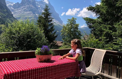 Desde la terraza, la sala de estar y el comedor y las habitaciones se tiene una vista maravillosa del Eiger, el Wetterhorn y el valle de Grindelwald.